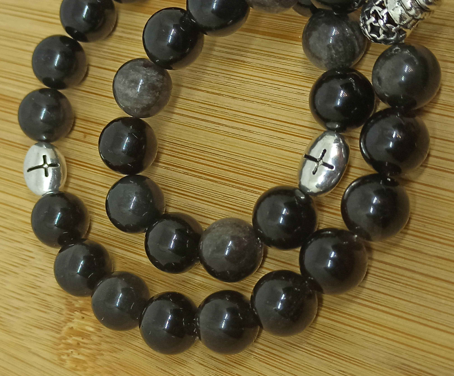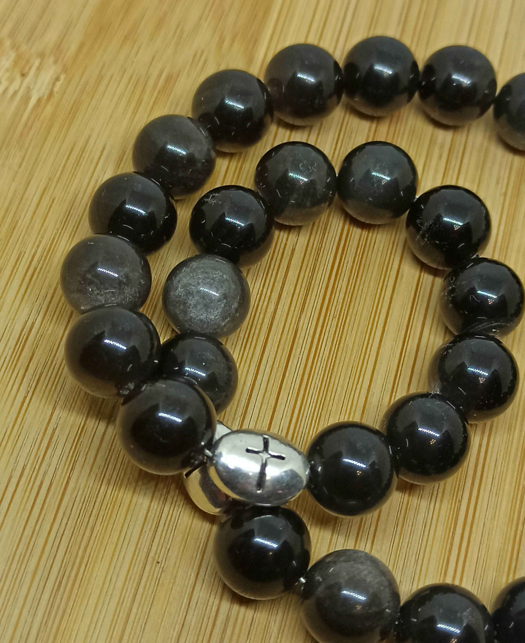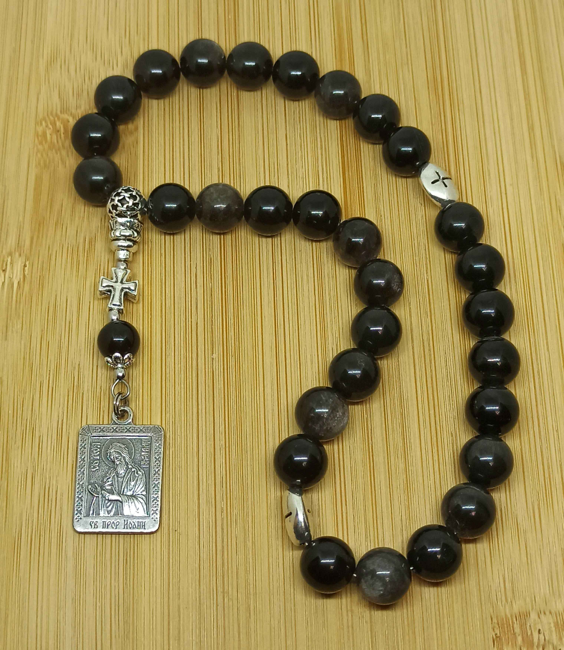 Классические православные четки из натурального обсидиана ручной работы на 30 зерен.