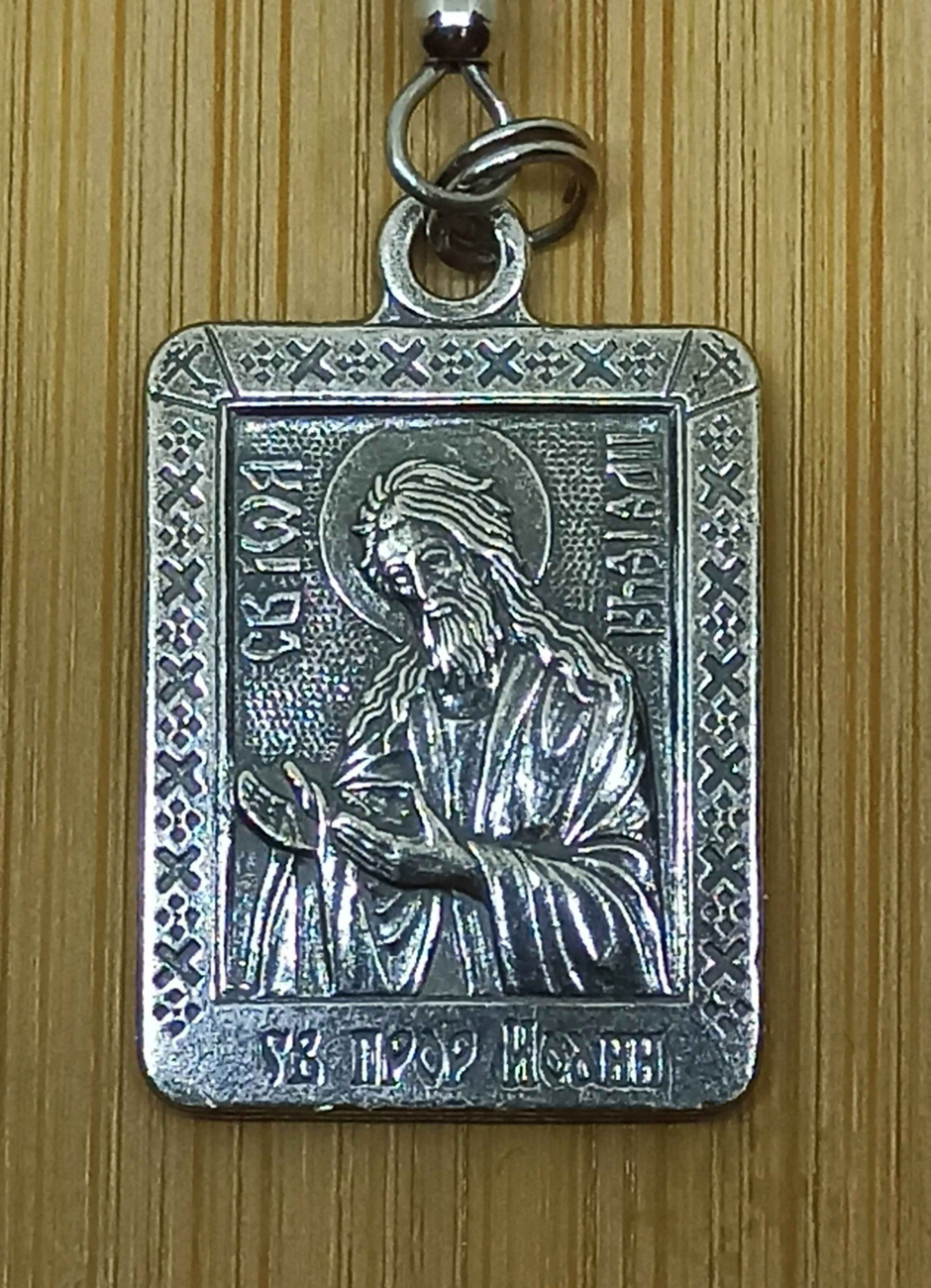 Крестик 10х8х4,5 мм, прямоугольная иконка-подвеска 25х18х2 мм, две овальных бусины-разделителя с крестиками 10х8х5 мм, нижняя 8 мм.